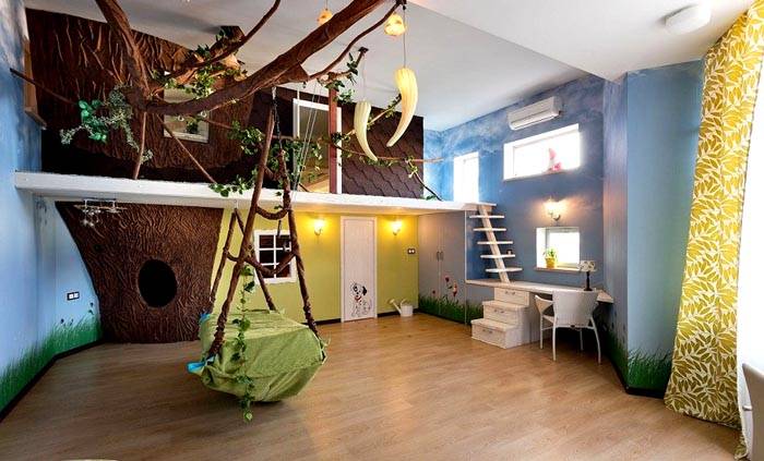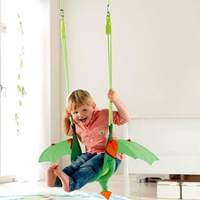 - אפילו נדנדה מקורה קטנה לילדים בדירה מתאימה למדי ללימוד פעולות עצמאיות.