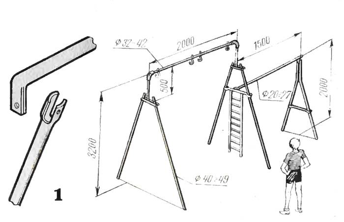 גרסה זו של רישומי המימד נבחרה כדוגמה. הוא מכיל את כל המרכיבים העיקריים של סוג זה של מוצר. בתיאור הבא תלמד כיצד לבנות נדנדת קיץ חיצונית מקורה. הידע שנצבר יהיה שימושי במהלך ייצור עיצוב מיוחד לילדים בארץ: