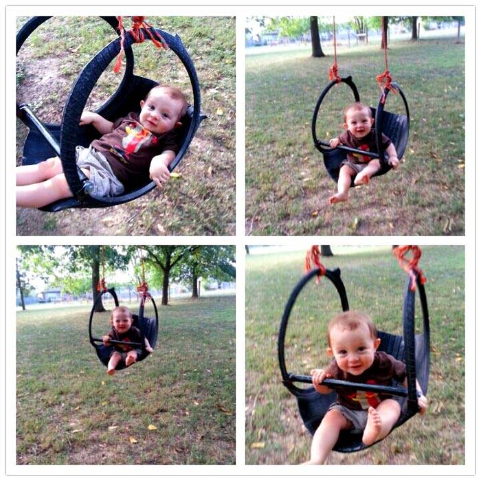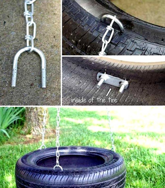 צמיג לרכב הוא בסיס טוב וזול לעיצובים שונים. מושבים כאלה לנדנדת ילדים חיצונית לבקתות קיץ ניתנים לקיבוע על שרשראות במצב אופקי ואנכי