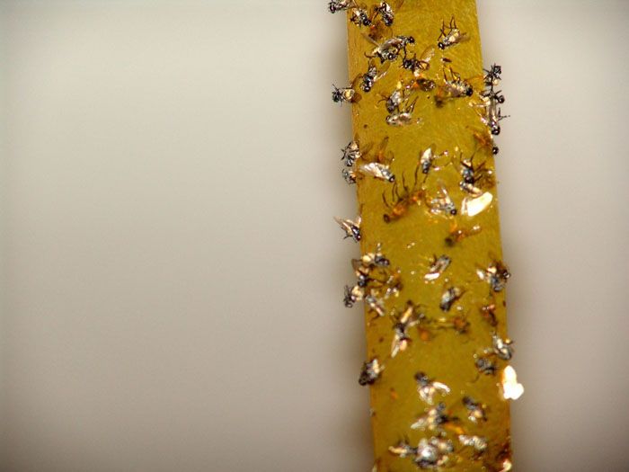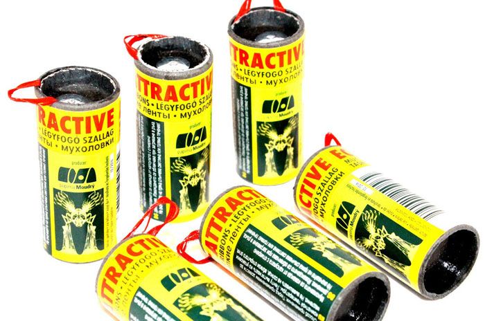 אמצעים פשוטים ובטוחים לאנשים. הם פשוט קלטות עם שכבת דבק שעליה חרקים יושבים ומדביקים. הסרט הזה, זרוע גופות של זבובים, נראה לא יפה במיוחד, אבל הוא עובד ביעילות רבה. העיקר הוא למקם אותו במקום שלא תיגע בו בטעות, או שהחתול או הכלב שלך לא יפלו בפח כזה.