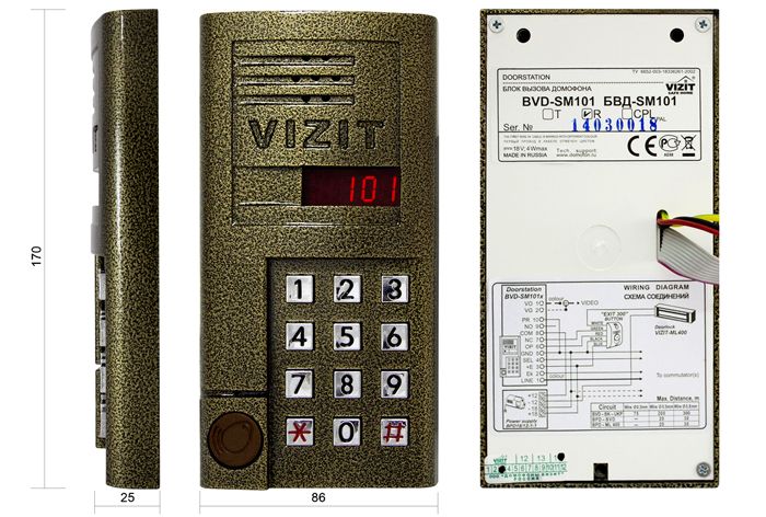 המקרה מוגן היטב מפני השפעות מזג אוויר ומכניות. בדרך כלל, היצרן מציע עיצוב חסין ונדליום שמקשה אפילו על נזק מכוון. הרמקול (1) מכוסה בסורג חסון. המיקרופון (5) מוסתר מאחורי פתח צר. בחלק מהדגמים יש אור אינפרא אדום (2) ומצלמה לניטור וידאו. "גלולה" או מכשיר מיוחד אחר מוחל על אזור מיוחד (6), בו כתוב קוד לפתיחה.