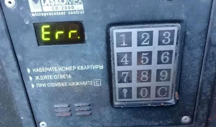 תמונה: cs8.pikabu.ru אם לא ניתן לפתוח את הדלת, האינטרקום הותקן על ידי אדונים מוקפדים ששינו את הגדרות המפעל