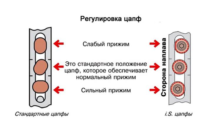 אם נוצרות בעיות בתנועת האבנט ביחס למסגרת, נדרש לכוונן את הברגים הממוקמים ישירות בצירים. לדלת הסטנדרטית שלוש נקודות נעילה. לאחר שפתח את האבנט לחלוטין, שחרר את אלמנט ההידוק האוחז בפס הקישוט.