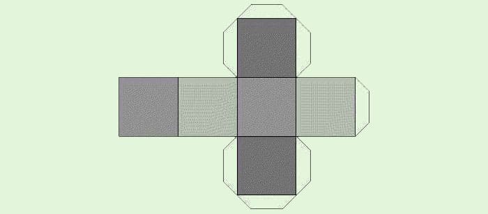 לכל קוביה יש 6 פרצופים, כך שיהיו בדיוק שש מהן בתכנית. ראשית, אנו מציירים את הריבוע המרכזי ברוחב הרצוי (זכרו זאת האפשרויות של A4 אינן אינסופיות), ומסביבו אנו מציירים 4 ריבועים נוספים באותו אורך הצד. הריבוע האחרון שאנחנו מציירים את ההרכבה על כל אלמנט