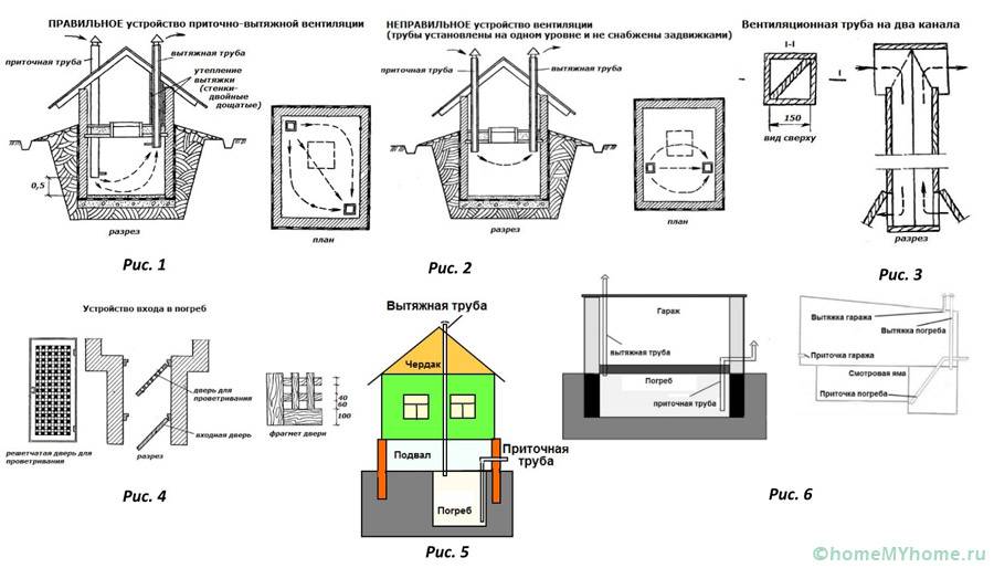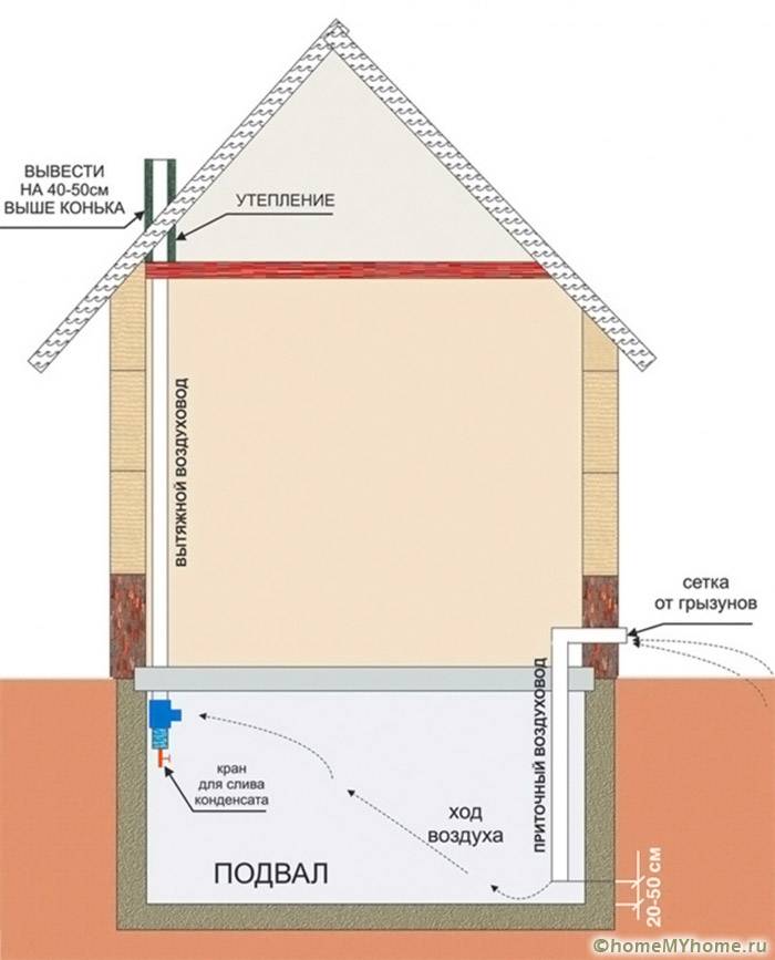 ארגון אוורור טבעי של המרתף עם שני צינורות