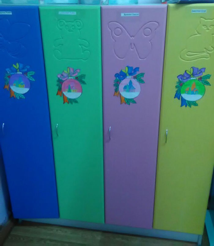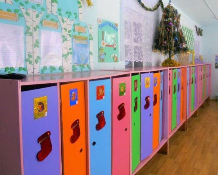 ארונית בגן קשורה למקום אחסון אישי, ילדים אדיבים אליהם. יתר על כן, כדאי לתלות איזה אלמנט דקורטיבי של ראש השנה על כל ארונית.