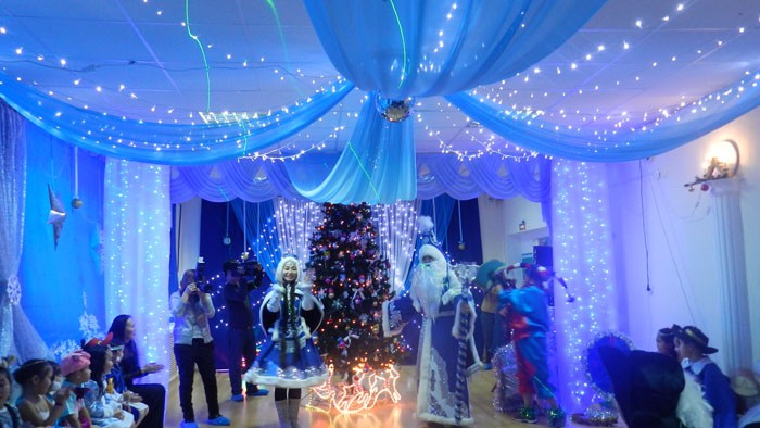 אנו מקשטים את אולם המוסיקה בגן השנה החדשה