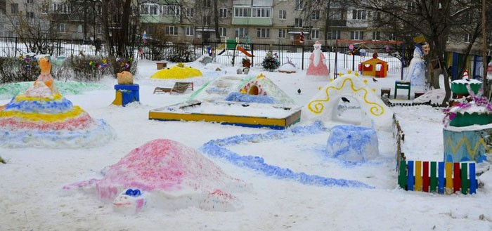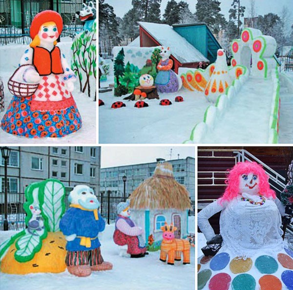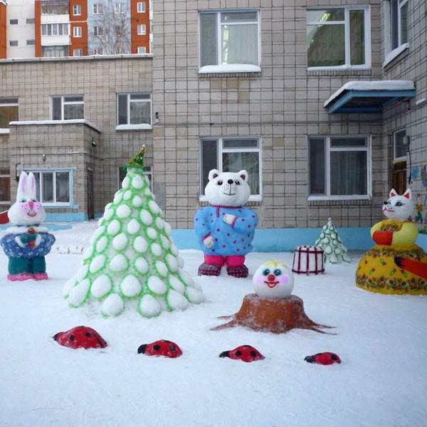 באזורים עם כיסוי שלג טוב, שלג הוא חומר דקורטיבי מצוין. אלה מבצרים, דמויות, אנשי שלג - ניתן לצבוע אותם בצבעים שונים או לקשט בענפי אורן ואשוח עם צעצועים.