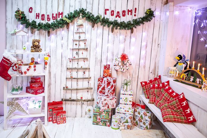 האם אפשר לא להשתמש בקולב במהלך החגיגות? בסדר גמור! פינה זו צריכה להיות נושא ולפגוש אורחים עם מצב רוח מדהים של השנה החדשה.