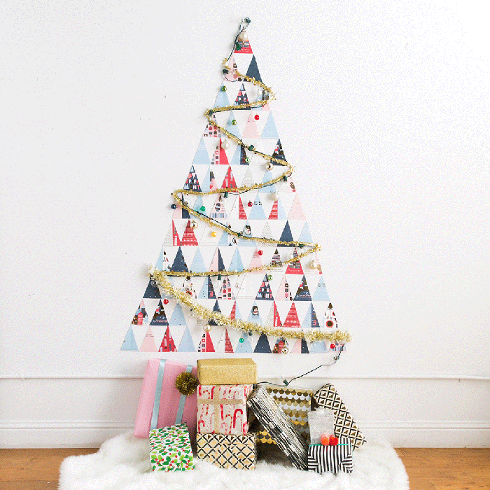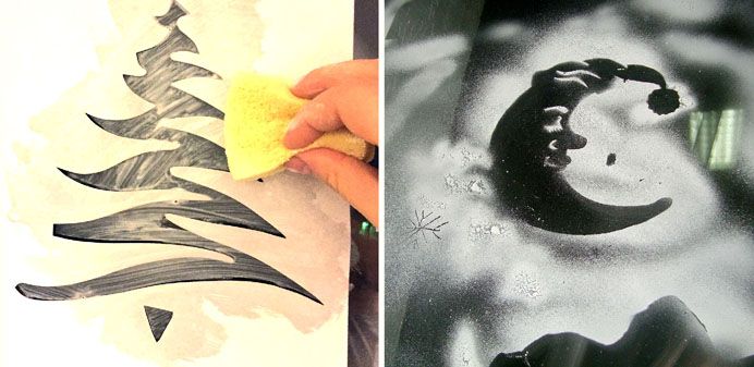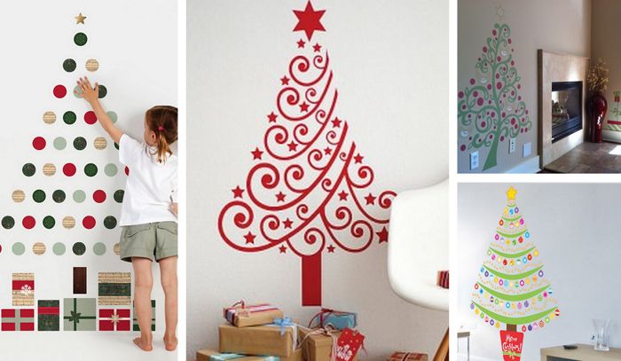 דפוסים נחתכים מסרט ויניל (אורקל) הדביק את עצמו ועל הקיר מקשטים דגמים מעניינים של עצי חג המולד.מוצר כזה מוסר ללא נזק למשטחים