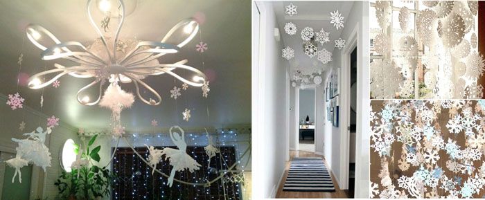 קל להשיג תבניות לבלרינה - עם זאת, כמו גם לצייר את הצלליות בעצמך. עדיף להפקיד חצאיות לגזור לילדים: אלה פתיתי שלג מנייר רגילים