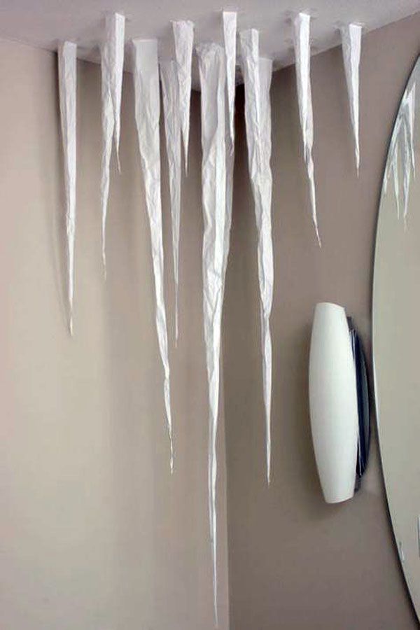 אל תתעלם מהדרך הפשוטה להוסיף עיצוב ראש השנה על ידי קישוט הקירות. תלוי במה בדיוק מכוסים הקירות, נבחרת שיטת העיצוב שלהם: זה יכול להיות מגוון של זרים, קולאז'ים נושאים, עצי חג מולד מסוגננים. הצמדת אלמנטים דקורטיביים לא כל כך קשה - קשה יותר להסיר את כל זה אחר כך מבלי להרוס את הטפט. לחיזוק משתמשים בווסים דביקים, סרט דו צדדי ומסמרים קטנים.
