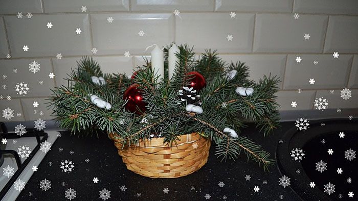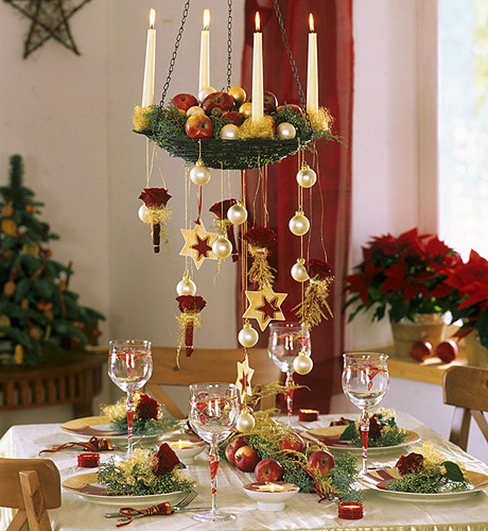 קישוט על השולחן: שימו זרדים של אשוחית, צעצועים בסל והכניסו נרות. אם אתם מתכננים להדליק נרות, יש לקבע אותם בשעווה במצב אנכי לחלוטין.