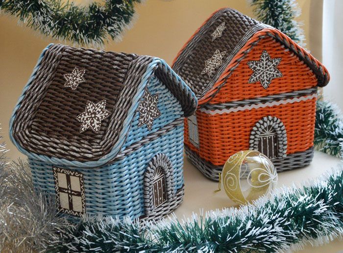 קל לשלוט באריגה מעיתונים, דפוס האריגה של בית כזה אינו שונה מדוגמת האריגה של סל פשוט. דקואז 'עם מפיות ראש השנה ישלים את העבודה