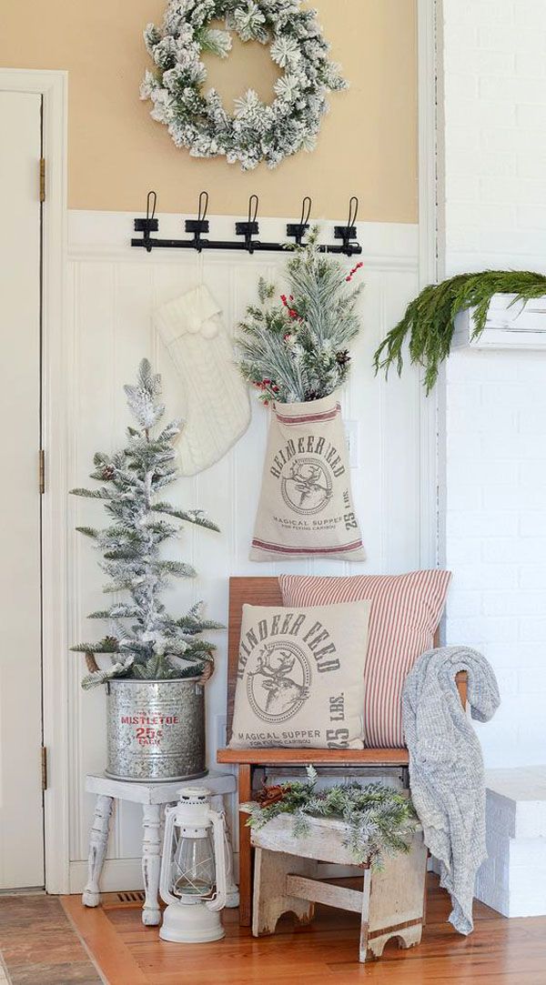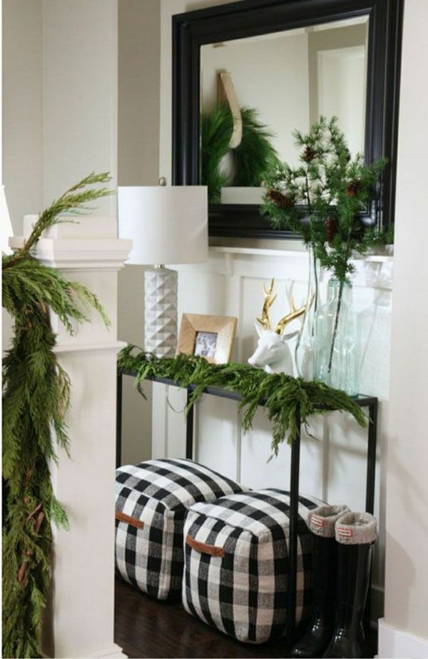 מי שלא אוהב במיוחד את הדומיננטיות של כדורי ראש השנה הצבעוניים יאהב את הקישוט הפשוט של המסדרון עם זרים מחטניים וזרים