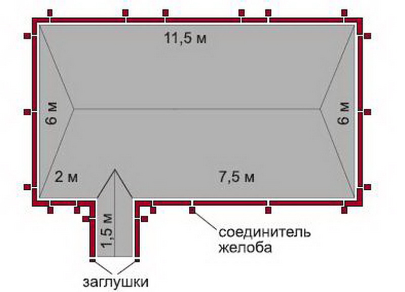- מספר המרזבים. 2 לשתי מדרונות ו -4 לארבעה שיפועים.