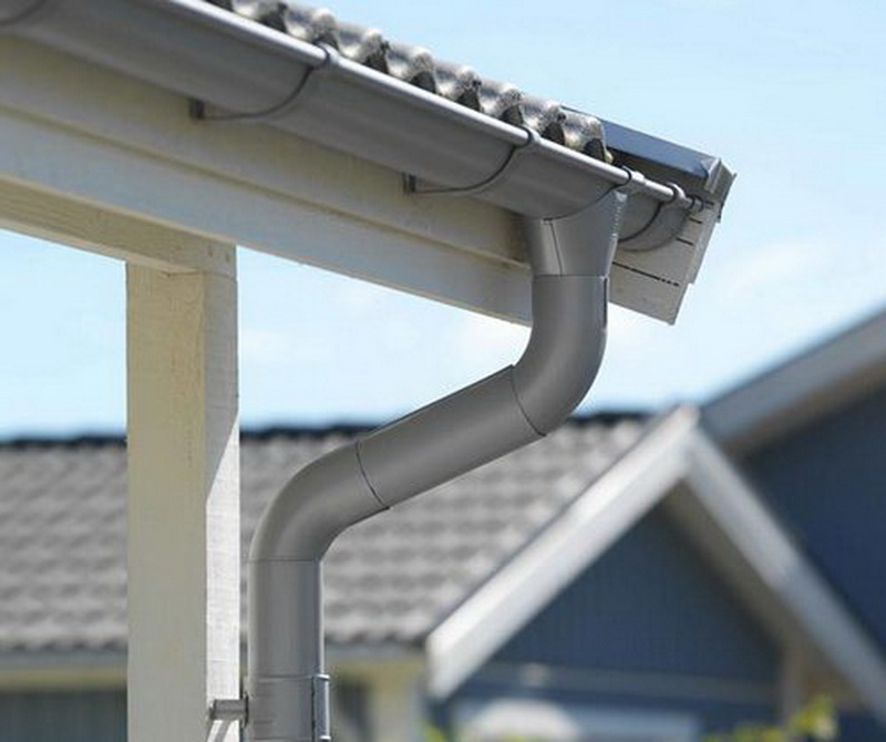 - מִגלָשָׁה. מדריך מים, המוחזק על התושבת. הם עגולים ומרובעים בצורתם. אם האזור מושלג, מרזבים עם מלכודות שלג יעשו זאת. יש גם מצנח מסתובב. זו הברך שהופכת את המים ל 90 מעלות. אגב, בצומת, הכוח הרבה פחות מאשר בשאר. לכן, הסוגריים צריכים להיות לא רחוקים מ- 15 ס"מ מהפנייה.