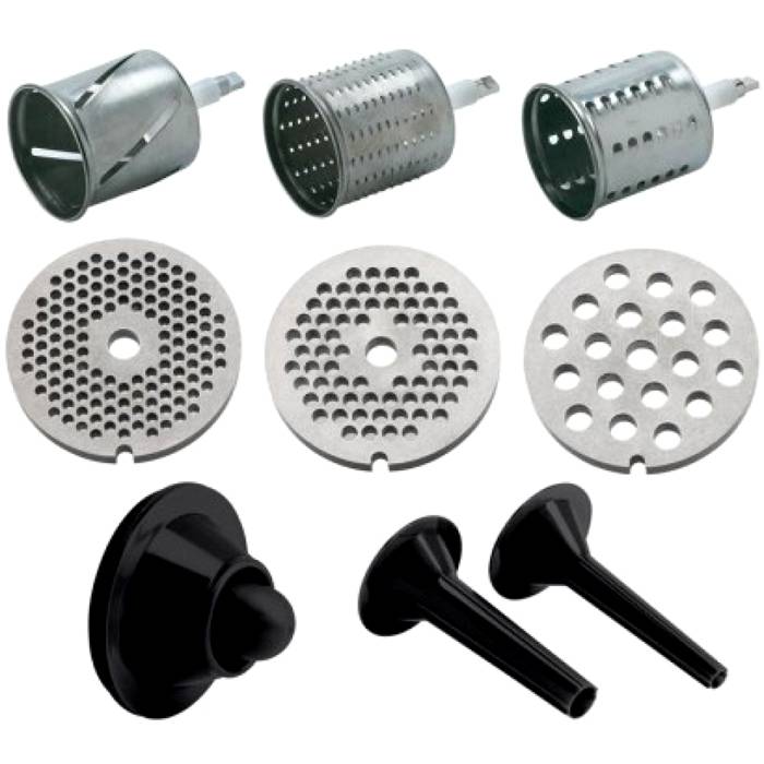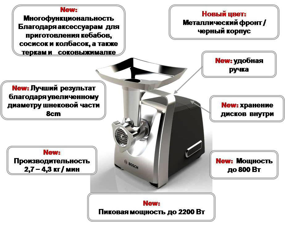 מידע מעניין! דגמים מודרניים מצוידים בתוספות מיוחדות, הדרושות לייצור מחית, חיתוך או נקניקיות. יש זרבובית מיוחדת להכנת צינורות חלולים ונקניקיות ממולאות. מוצרים מסוימים כוללים פומפיה, חותך ירקות או מסחטת מיץ.