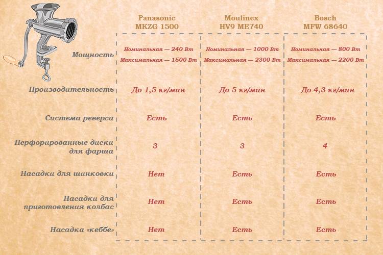 טבלה 1. השוואה בין מטחנות הבשר החשמליות הטובות ביותר דגמים של מטחנות בשר חשמליות עם גלגלי מתכת בייצור רוסי זולים יותר מעמיתיהם המיובאים. אנו מקווים שתמצא את הביקורת שלנו מועילה. זכרו שלפני שאתם קונים מטחנת בשר, עדיף לברר כמה שיותר מידע על הדגמים השונים. זה יאפשר לך למצוא את האפשרות הראויה ביותר. ביקורות על כמה דגמים יעזרו לך לבחור את האפשרות הטובה ביותר
