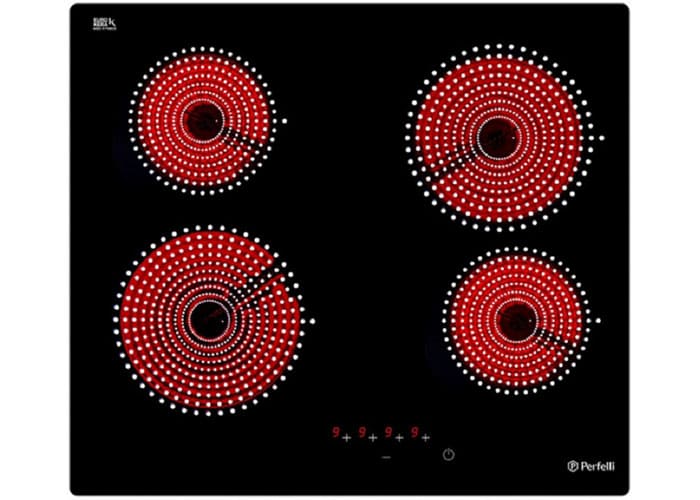 החימום מתבצע כתוצאה מאינטראקציה של מנורת הלוגן וסליל תרמי. משטר הטמפרטורה שנקבע מושג תוך מספר שניות. קירור מתרחש גם במהירות.במהלך הפעולה יש צורך להחליף מעת לעת את מנורת ההלוגן, שהיא חומר מתכלה. החסרונות העיקריים יכולים להיחשב כצריכת אנרגיה גדולה למדי - מ -2 קילוואט לשעה, כמו גם חימום חזק של המשטח ליד המבערים.
