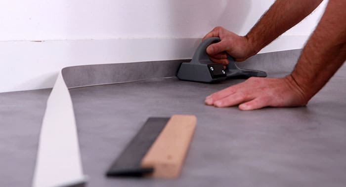 - לינוליאום נלחץ לרצפה ומוחלק בעזרת מערוך קונסטרוקציה מיוחד. תנועה על הרצפה אסורה למשך 1.5-2 ימים.