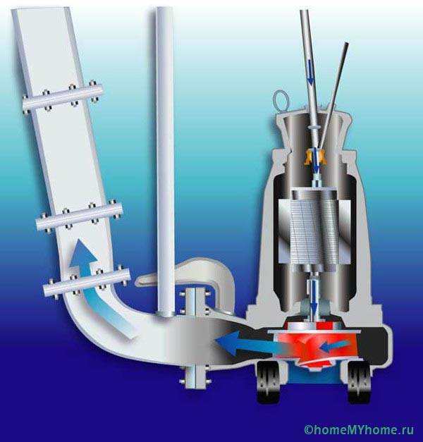 המפוח הצולל מופעל באמצעות חשמל. זה גורם לסיבוב המדחף.לפיכך, הנוזל זורם מהבאר או מהבאר אל הצינור, שמוביל בתורו מים למערכת אספקת המים.