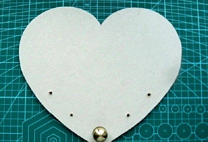 - אנו יוצרים חורים עם אגרוף ומהדקים מחזיק מפתחות מעץ.