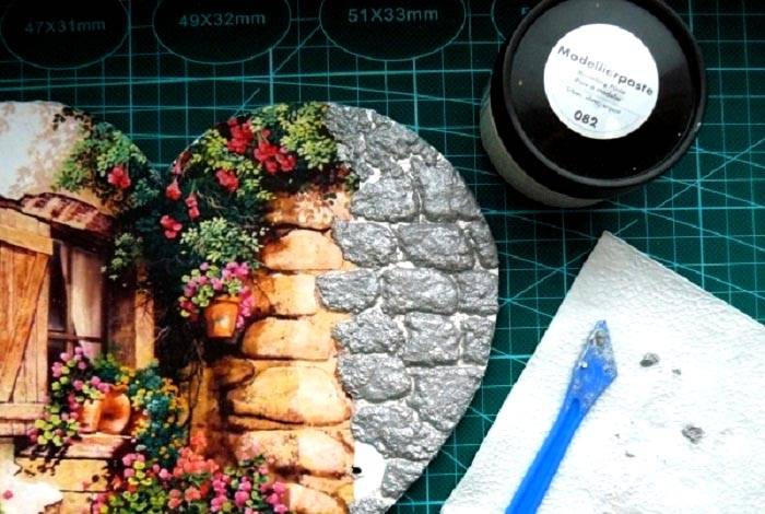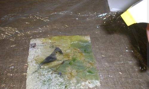 לאחר מכן, דבק בזהירות את התמונה לקרטון באמצעות PVA. לאחר הייבוש, אנו מכסים את המוצר בלכה.