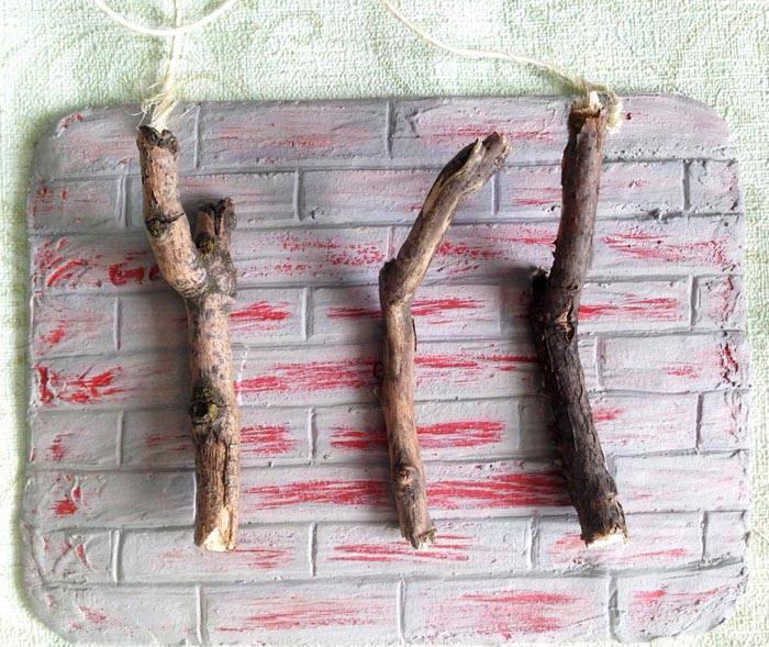 כל חומר בהישג יד מתאים לייצור בעל מפתח. אתה יכול להשתמש בענפים פשוטים על קרש עץ.