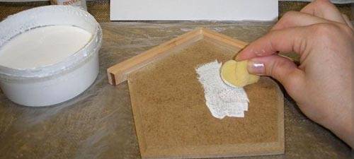 ראשית עליכם להדביק את הגג ובאמצעות סכין פלטה למרוח שכבת משחה המעניקה את המבנה.לאחר הייבוש יש למרוח נצנצים וגוון צבע כסוף. תן לו להתייבש שוב, ואז הבית לכה, מייבש ומותקנים מחברים למפתחות.