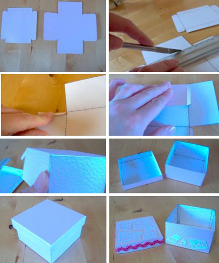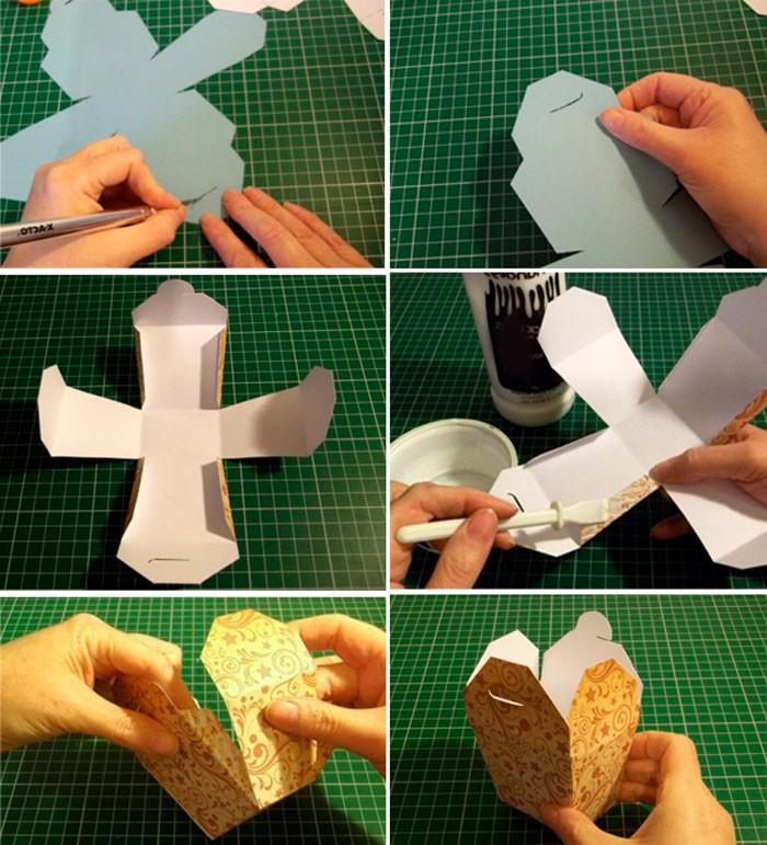 הקופסה מדהימה בכך שהיא קלה להרכבה ואינה דורשת טיפת דבק. עדיף לקחת נייר רעיונות כבד, שבעצמו נראה יפה להפליא.