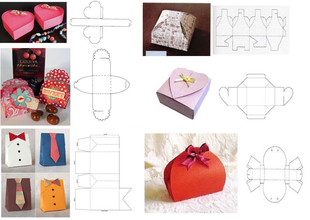 כדי לא לקבל "משהו" עקום ולא מובן, אלא להכין קופסת מתנה יפה אמיתית במו ידיך, עדיף להשתמש בהוראות ובתבניות מוכנות בגדלים מתאימים.