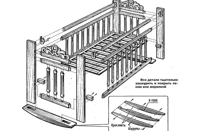 ציור זה של מיטת תינוק מדגים את הצורך במחקר מדוקדק של העיצוב. ניתן לא לכלול אלמנטים מורכבים מדי להעתקה עצמאית או להחליף אותם בפרטים פשוטים. עליכם לבדוק את תהליך ההרכבה שלב אחר שלב. במצבים מסוימים תזדקק למחקר מקדים של טכנולוגיות מיוחדות, רכישת חומרים מתכלים נוספים, כלים.