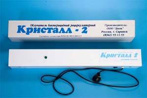בעזרת מכשיר "קריסטל" ניתן לחטא היטב את המקום. טיפול UV מסייע להפחתת שכיחות זיהומים והצטננות. בעת השימוש במכשיר, יש צורך להרכיב משקפיים מיוחדים, שכן אם הקרניים נכנסות לעיניים, אתה עלול לגרום נזק רב לעיניים.