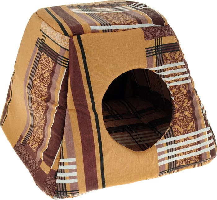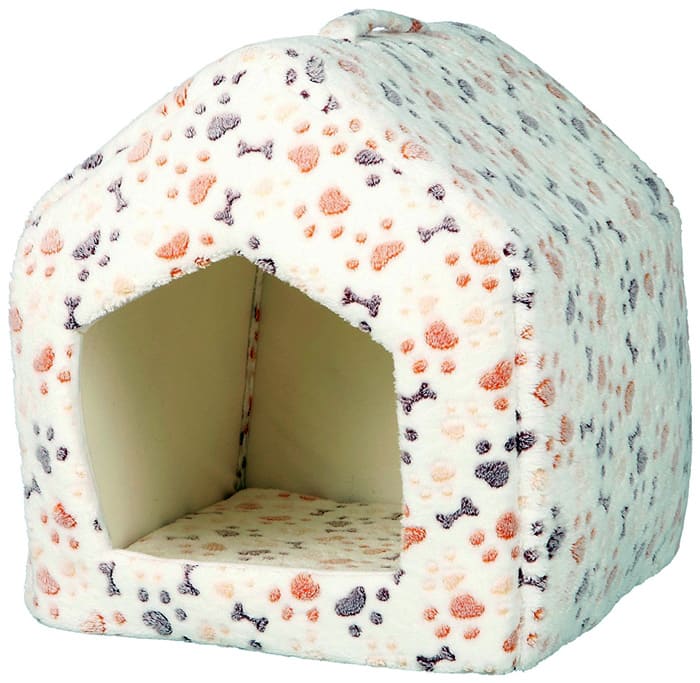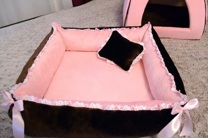 בית כזה יכול להיות עשוי מכותנה או מפשתן. זה נראה כמו כסא מיני לחיות מחמד. עבור כלבה נקבה, זה יכול להיות מעוטר בקשת, לאחר שסיפק בעבר קיבוע אמין של הקישוט.