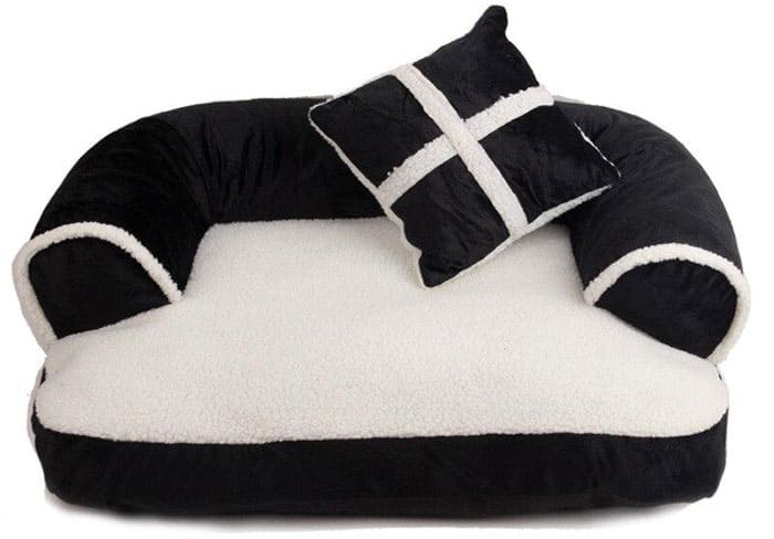 אתה יכול לתפור כיסא נוח לחבר בעל ארבע רגליים בצורת כרית עם גב, המדמה ספה מיניאטורית. מיטה כזו יכולה להיות עשויה מצמר, קטיפה או טקסטיל רך אחר. אפשרות זו אידיאלית לכלבים קצרי שיער, שכן הרבה שיער נצמד לבד בזמן הנשירה.