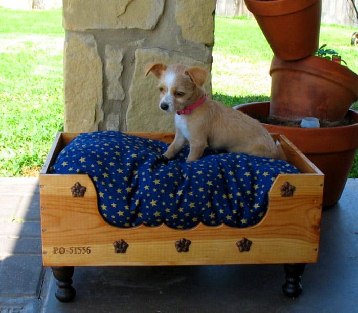 מיטת כלבים יוצאת דופן על רגליים מגולפות נראית מרשימה מאוד גם בבית וגם ברחוב. כמרכך, תוכלו להשתמש בכל כרית ישנה, בבדים שונים, או במיטה שנתפרה במיוחד עבור חיית המחמד שלכם.