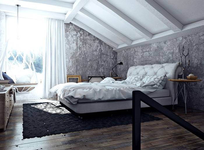 - אם אין הרבה כסף, אז מגמה כזו בעיצוב תהיה פיתרון טוב ליצירת נוחות ונוחות. תוכלו לחסוך לפחות בגימור קירות ותקרות.