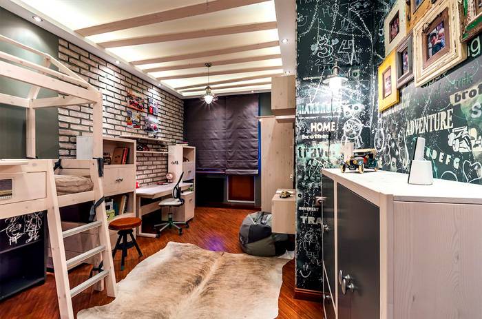 - שילוב של שטח גולמי וטכנולוגיה נפוץ בקרב צעירים. עם זאת, עבור משפחות עם ילדים, סגנון זה כמעט אינו מתאים.
