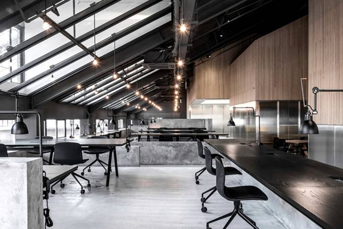 כשעבר לחצרים למגורים, המרחב שמר על ראשיתו: צינורות וקירות לבנים נותרו לנגד עינינו, שלא התקבלו כמסיכות בחומרי גימור.