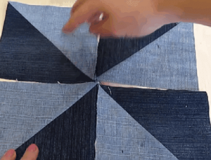 - לתפור רצועת בד דקה בין שני חלקי הריבוע.
