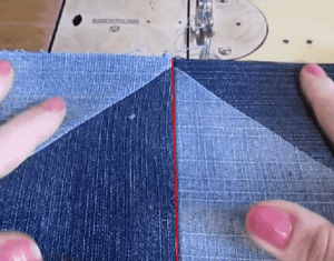 - שמנו את החלקים המשולבים מתחת למחט של מכונת התפירה ועוקבים בקפדנות אחר הקו.