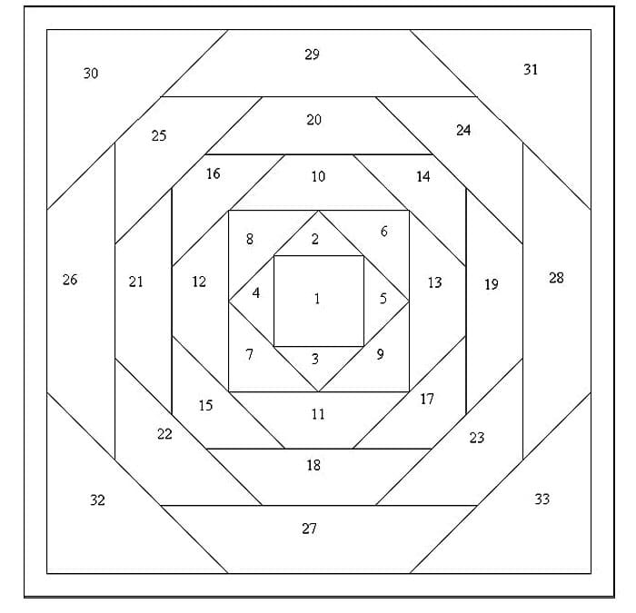 תפירת שמיכת טלאים במו ידיכם למתחילים דורשת שולי חובה ויצירת תפרים חזקים מספיק. הקישוט סביב כל היקף המוצר יכול להיות בעל עיצובים שונים. לדוגמא, כמו בתצלום: האמצע מיוצר בהקרנה אלכסונית, ולשוליים יש זווית ישרה. בטכניקת הטלאים למתחילים, חשוב לעקוב אחר התמונות שלב אחר שלב על מנת לא לפספס תפר חשוב.