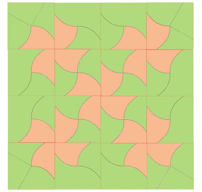- קח שלושה ריבועים לבנים ושרטט לאורכו אלכסון משני חלקים לפינה הימנית העליונה, ומאחד לפינה הימנית התחתונה.