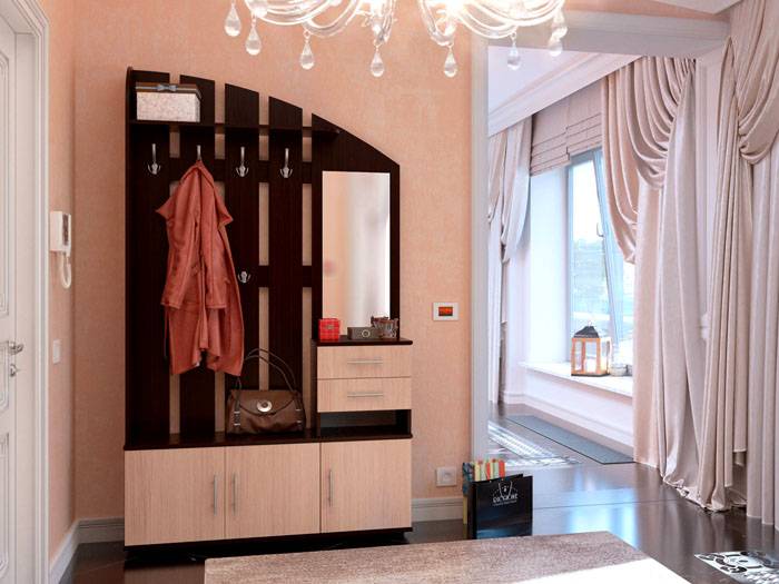 מידע מועיל! עם מסדרון קטן, תצטרך למצוא מקום אחר לאחסון כל הלבוש החיצוני שלך. בשביל קולב פתוח, אתה צריך להשאיר רק את מה שמלבישים מדי יום בהתאם לעונה, וכל השאר יכולים לחכות לתור, למשל, בארון על אכסדרה.