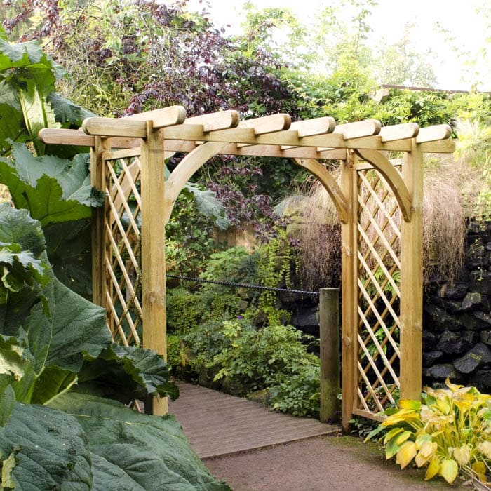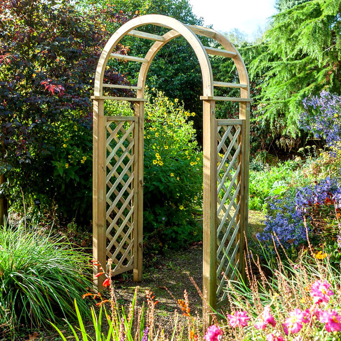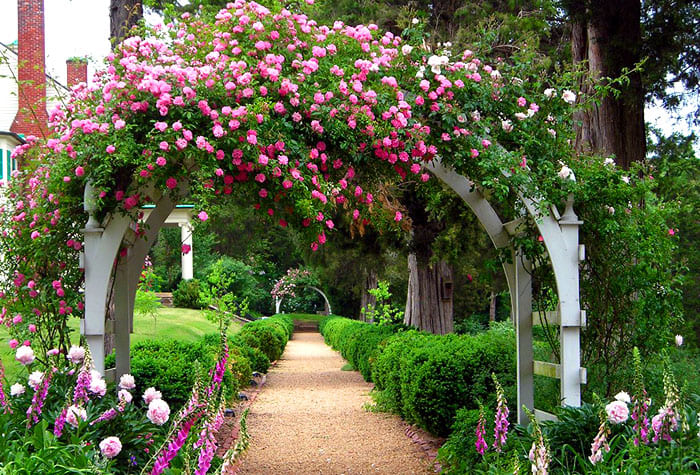 הקשת משתתפת בייעוד השטח, מפרידה בין אזורים שונים, מקשטת את הכניסות. מבנים מקושתים, בהתאם לסגנון הגן, עשויים עץ או מתכת.