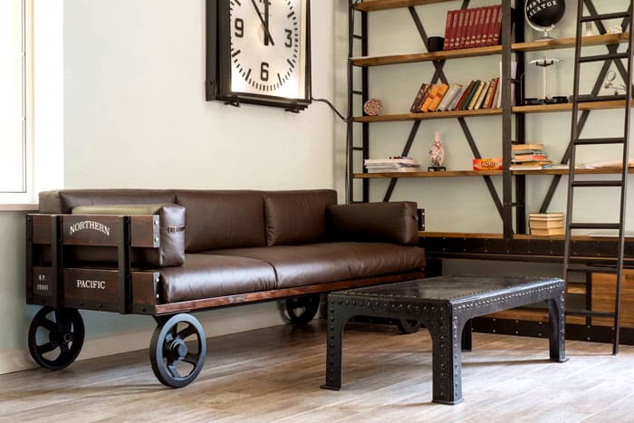 מה שמעניין הוא הפיכת החומרים שיש להם מקום בסדנאות התעשייה של מפעלים וצמחים לריהוט מסוגנן. זהו גלגול נשמות מדהים של לוחות עץ, סורגים, עור, ג'ינס, צינורות, חלקי מתכת למשהו לא בנאלי וייחודי.
