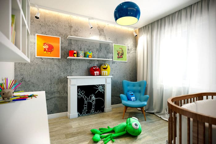 אם הדירה היא לופט, אז כל החדרים ואזורי החלל נופלים תחת הסגנון. חדר הילדים הופך להזדמנות נהדרת להפגין גישה יצירתית ויצירתית לפתרונות עיצוב פנים.