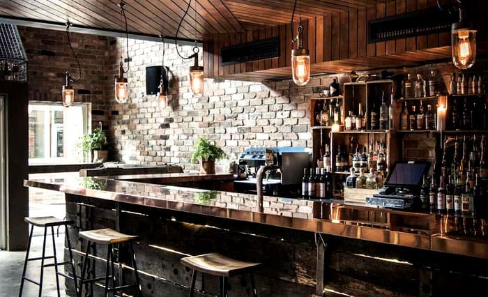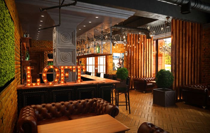 סגנון תעשייתי בפנים המסעדות והברים