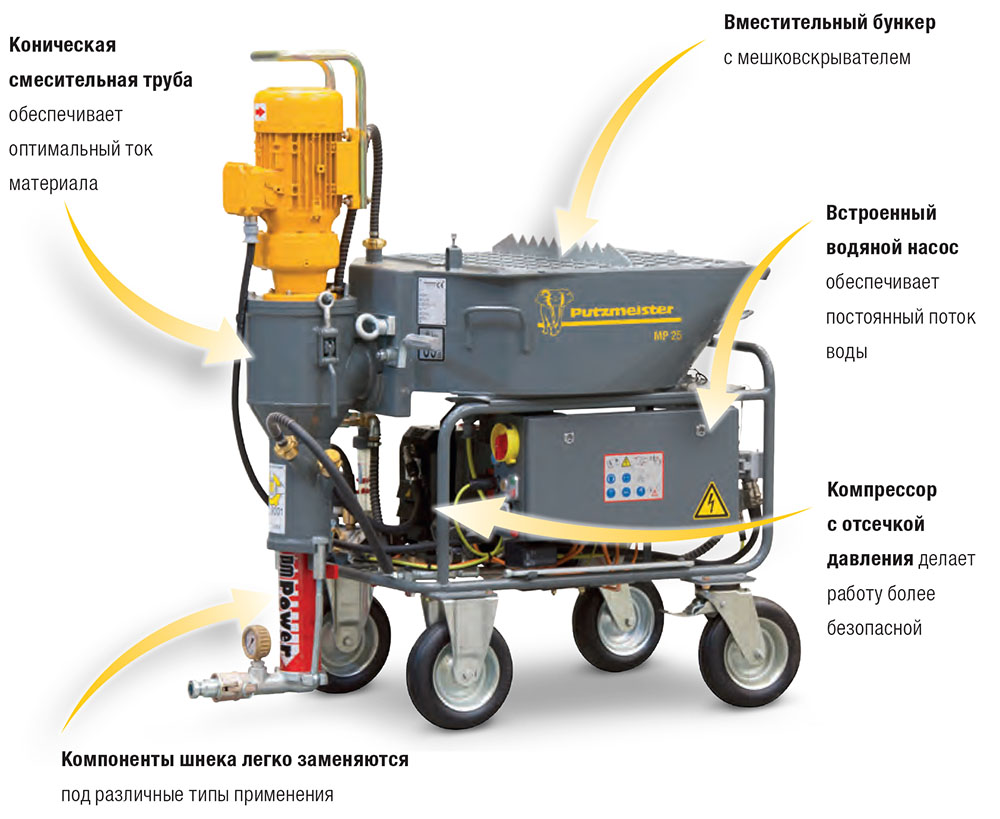 PFT. יצרנית תחנות טיח גרמנית, שמוצריה הוכיחו את עצמם בשוק.הדגמים המצליחים ביותר הם PFT G4 Smart ו- RITMO XL (סדרת ציוד חדשה). למרות העובדה כי הביצועים של דגמים דומים של שתי הסדרות כמעט ואינם שונים, התחנה של סדרת PFT כמעט גדולה פי שניים. הציוד פועל מרשתות חד פאזיות ותלת פאזיות, ישנם גם דגמים מרובי מתח (220 וולט / 380 וולט). כמעט כל הביקורות על המוצרים של יצרן זה חיוביות, כך שאם המחיר הגבוה לא מפחיד אותך, עדיף לרכוש אותן. טווח מחירים 250-300 אלף רובל.